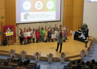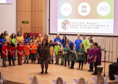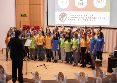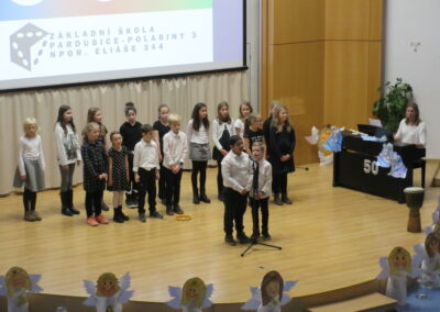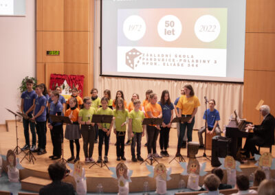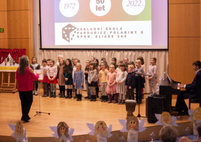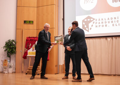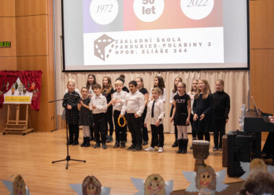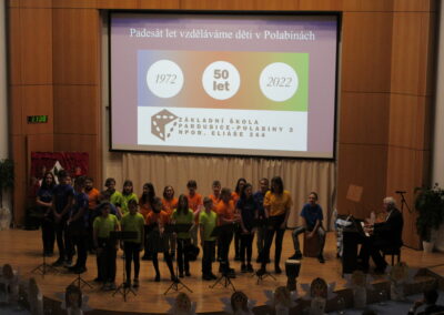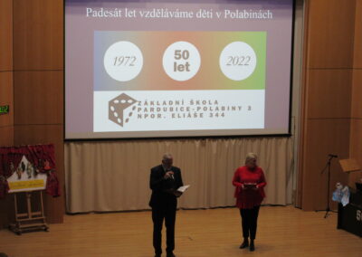 Ve čtvrtek 24. listopadu si naše škola připomněla 50. výročí svého působení. Poprvé své dveře otevřela 1. září roku 1972. Slavnostní program k tomuto kulatému výročí se odehrál v Aule Univerzity Pardubice. Dvě dopolední vystoupení byla určena žákům naší školy, dvě večerní pak rodičům, někdejším zaměstnancům, a také hostům, mezi nimiž se objevili primátor města Jan Nadrchal a náměstek primátora Jakub Rychtecký. Programem provázela paní učitelka Renata Kmoníčková, které vypomáhali moderátoři z řad žáků. Návštěvníkům představili historii školy, ale prostřednictvím tanečních a hudebních vystoupení také její současnost. Na záznam večerního představení pro hosty se můžete podívat zde.
