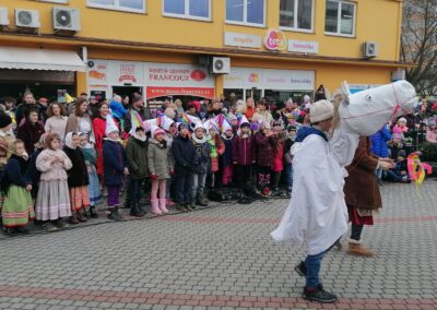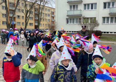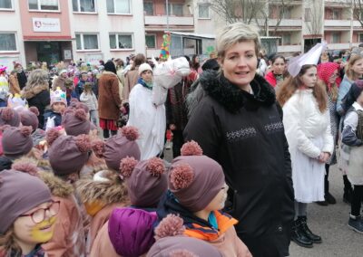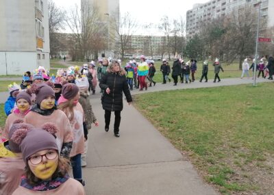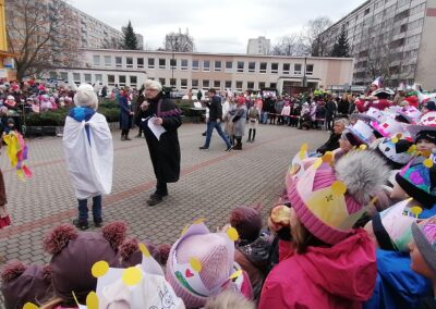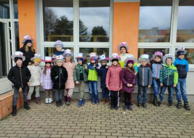 Ani na 8. masopustním průvodu Polabinami naše školní družina nechyběla. Tradičního veselí se v úterý 21. února 2023 zúčastnili žáci druhých a třetích tříd, kteří se pečlivě připravili. Vyrobili si masky a klobouky a s veselou písničkou vyrazili oznámit příchod masopustu. Bohatý kulturní program si účastníci osladili tradiční koblihou.