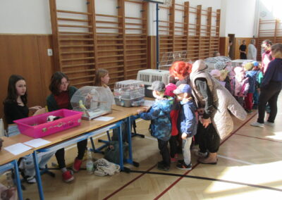 Letos, stejně jako každý rok, si naše škola připomněla Den Země uspořádáním akce Máme rádi zvířata. V prostoru školní tělocvičny žáci svým kamarádům, ale i malým návštěvníkům z mateřských škol, představili své domácí mazlíčky. Výběr mazlíčků, které chovají, je opravdu pestrý, jak dokládají přiložené fotografie.