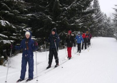 Lyžařský výcvik žáků 7. ročníků se letos jako již tradičně konal v malebné vesničce Horní Malá Úpa téměř na polských hranicích. Ubytováni jsme byli v hotelu Trautenberk. Zdejší zázemí nám absolutně vyhovuje, ubytování je velmi komfortní, strava exkluzivní. Žáci mají k dispozici prostornou hernu, kde jsme se každý večer scházeli, hráli společenské hry, hodnotili výkony a zlepšení i poskytovali zajímavé přednášky o historii lyžování nebo způsobech přípravy běžeckých lyží.