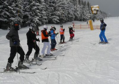 Sjezdové lyžování probíhalo každé dopoledne na hlavní sjezdovce přímo naproti našeho ubytování, jedno dopoledne se žáci 1. a 2. družstva vydali prozkoumat i sjezdovku „U Kostela“. Jelikož jsme na rozdíl od minulého roku měli po celou dobu lyžařského kurzu výborné sněhové podmínky a mrazivé počasí, bylo možné každé odpoledne realizovat i výcvik na běžkách. Jedno odpoledne se žáci vydali na výlet, kde měli možnost na tradičních horských chatách ochutnat místní speciality. Ve čtvrtek se všichni žáci zúčastnili závodů v běžeckém lyžování.