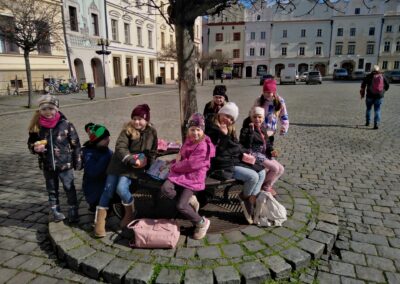V pondělí 18. března jsme se s prvňáčky vydali na Zelenou bránu. Čekalo nás zde povídání o Velikonocích a vyrábění motýlků. Pardubice z výšky jsme si užili po odvážném výstupu na ochoz Zelené brány. A protože bylo krásně, nasvačili jsme se v jarním sluníčku na Pernštýnském náměstí.