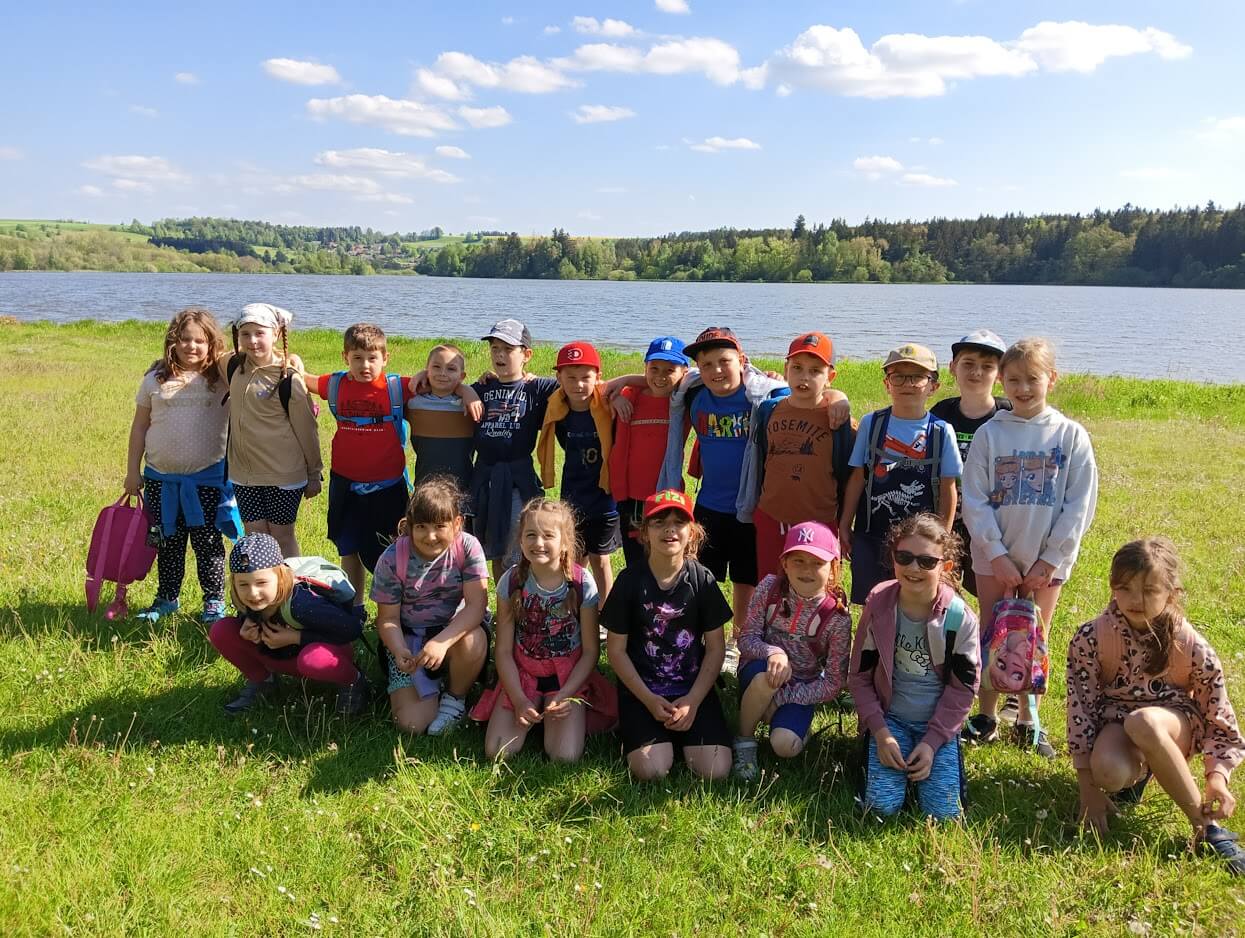 Posíláme pozdrav ze školy v přírodě! Je tu krásně a navíc nám pan kuchař moc dobře vaří. Rybník Řeka je jako malé moře! Třídy 2.A a 2.D