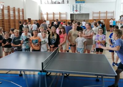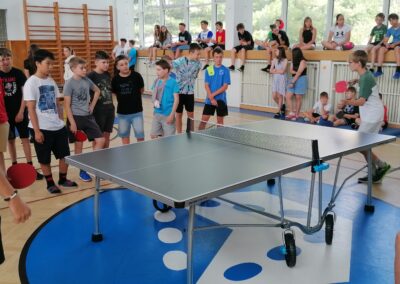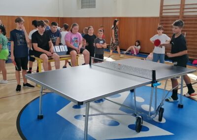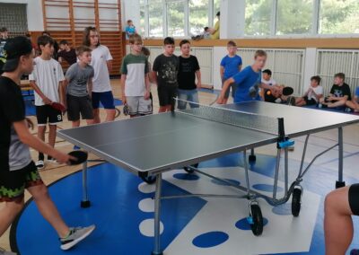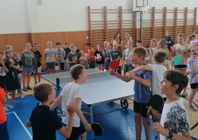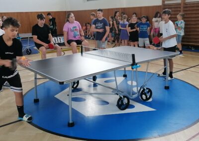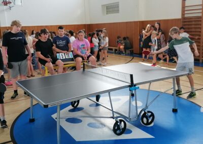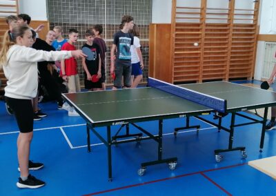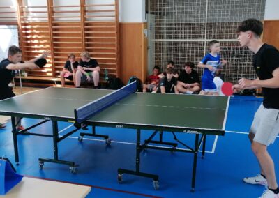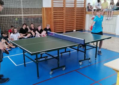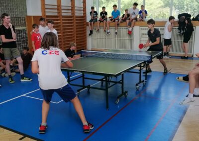Za pingpongovými stoly svedlo za vydatného povzbuzování spolužáků, třídních učitelů i dalších pedagogů líté boje celkem 60 žáků a žákyň školy, kteří soupeřili ve třech kategoriích (4. a 5. třídy, 6. a 7. třídy, 8. a 9. třídy).