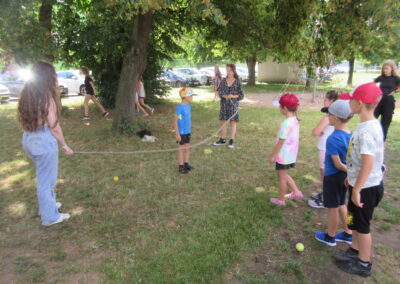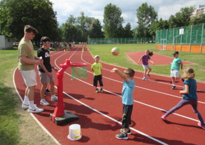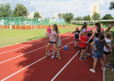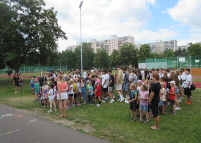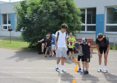 Pro žáky prvních tříd sportovní den připravili žáci devátých ročníků na půdě školy.