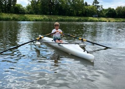 Žáci 4.B zavítali na sportovní den do Veslařského klubu v Pardubicích. Nejprve si vyzkoušeli veslování na trenažerech. Po nácviku proběhl třídní závod na 200m. Děti se mohly podívat i na různé vybavení a v závěru si někteří vyzkoušeli veslovat i na Labi.