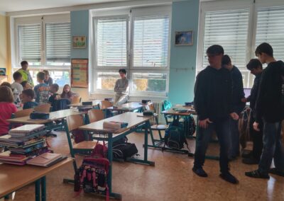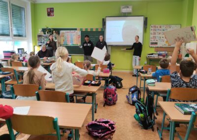 Žáci Volitelné výtvarné výchovy devátých tříd nás pozvali tentokrát na návštěvu sousedního Rakouska. I přes počáteční obtíže se nám podařilo projekt představit ve třetích třídách. Naši nejstarší studenti si také vyzkoušeli, jak vytvořit pro mladší spolužáky zábavnou vyučovací hodinu.
