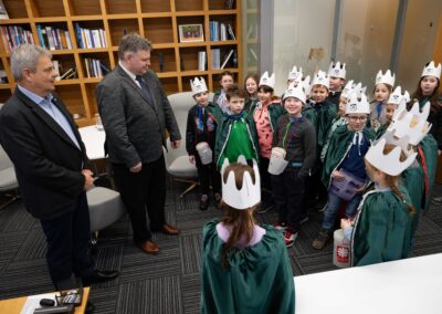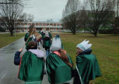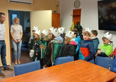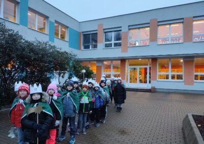 Jako každý rok i letos jsme se zapojili ve spolupráci s Oblastní charitou Pardubice do Tříkrálové sbírky. Naši malí koledníci ze 3.A zahájili své koledování ve středu 8. ledna na Univerzitě Pardubice. Navštívili rektorát v čele s rektorem prof. Liborem Čapkem a poznali i další členy rektorátu. Po návratu do školy zavítalo procesí koledníků do naší školní jídelny. Ve čtvrtek pokračovalo koledování na naší škole, kde se již stalo tradicí. Tříkrálové procesí zazpívalo koledu do školního rozhlasu, poté tři králové prošli s doprovodem deváťáků o velké přestávce školu a navštívili kabinety pedagogů. V pátek koledovali malí koledníci ještě na malé radnici Městského obvodu Pardubice II u pana starosty Mgr. Bc. Radka Hejného, poté ve Středisku rané péče. Zde koledují rovněž již pravidelně. Video z koledování na univerzitě si můžete prohlédnout zde.