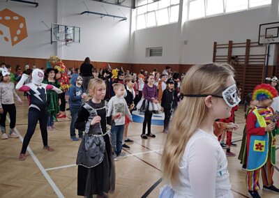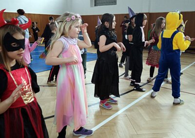 V pátek 21.2. jsme si užili karnevalové veselí s Inkou Rybářovou. Rej masek, tanec, zpívání, nechyběly soutěže, a také malá příprava do tanečních. Chlapci se naučili požádat dívku o tanec a společně si zatančili country.