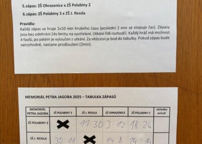 Už od prvních zápasů bylo jasné, že turnaj nabídne kvalitní souboje. Týmy předvedly bojovnost a skvělou týmovou spolupráci. Nejúspěšnějším celkem se nakonec stala ZŠ J. Ressla, která si zaslouženě odnesla vítězství. Druhé místo obsadila ZŠ Ohrazenice a bronz putoval na polabinskou dvojku. Domácímu týmu se sice nepodařilo dosáhnout na medailové umístění, ale jejich nasazení a bojovnost si zaslouží uznání. Memoriál Petra Jagoba tak opět potvrdil svou důležitost v podpoře mládežnického sportu v Pardubicích. Už teď se všichni těší na příští ročník, který jistě přinese další skvělé basketbalové momenty!