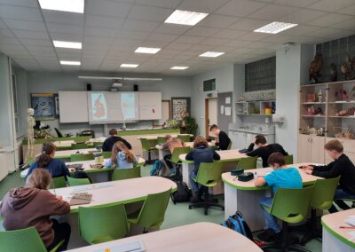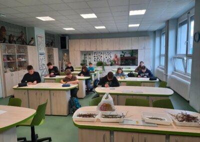 Dne 28. ledna 2025 se na naší škole uskutečnilo školní kolo biologické olympiády, které bylo určeno pro žáky kategorie D (6.-7. ročník) a kategorie C (8.-9. ročník). Celkem se této soutěže zúčastnilo 25 žáků. Tématem letošní olympiády byla „Obrana, aneb Jak nebýt sežrán“, což přineslo mnoho zajímavých úkolů a výzev. Školní kolo se skládalo ze tří hlavních částí. První částí byla laboratorní práce, kde mladší žáci pracovali s větvičkami keřů s trny, zatímco starší žáci se zabývali prací s kořením a silicemi z pomerančové kůry. Druhou částí bylo poznávání rostlin a živočichů, kde žáci prokazovali své znalosti a schopnosti v identifikaci různých druhů. Třetí částí byl test, který vycházel z obecné teorie a především ze studijního textu, který žáci měli k dispozici. Do okresního kola nám nakonec postupují z každé kategorie tři žáci s nejvyšším bodovým ziskem. Všem zúčastněným žákům děkujeme za jejich snahu a účast, a postupujícím přejeme hodně štěstí v dalším kole!