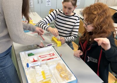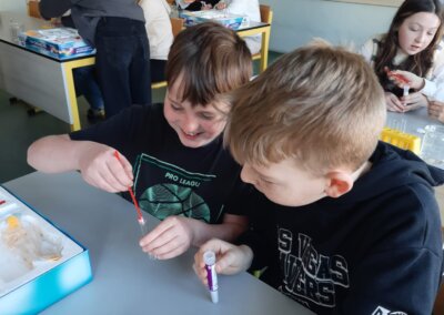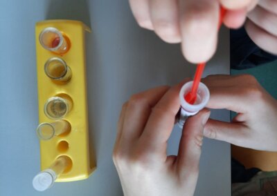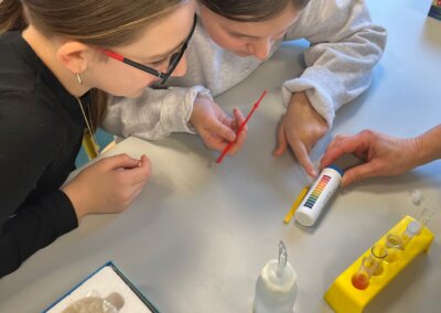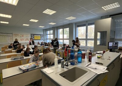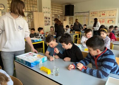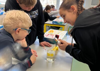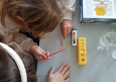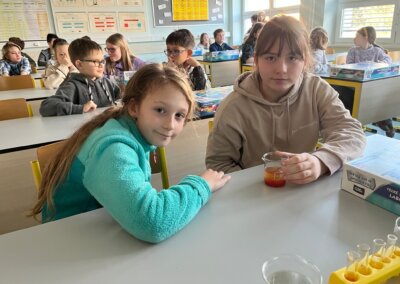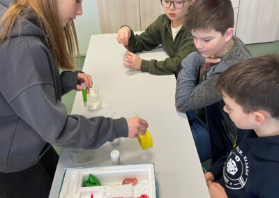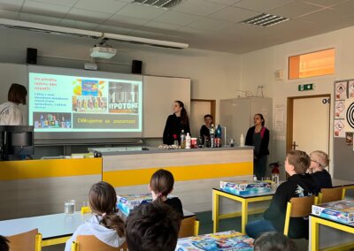 Pro děti měli připravenou zjednodušenou verzi prezentace zaměřenou především na pH těchto nápojů a obsah cukrů. Cílem bylo ukázat na nevhodnost a škodlivost pití těchto nápojů. Následně si děti vyzkoušely pomocí pH papírku, pH metru a lakmusového papírku určit pH, kyselost, zásaditost některých látek.