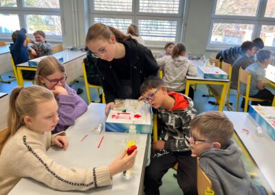 V minulém týdnu představili žáci 9.A v 5. třídách svůj projekt o energetických a iontových nápojích na téma „Super síla v plechovce – správná volba nebo skrytá hrozba“.