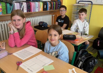 Starší žáci z 5. tříd se stali mentory mladším spolužákům, společně četli a diskutovali o přečtených příbězích. Následně zpracovali úkoly k textu v různých úrovních a vzájemně si pomáhali. Oba ročníky si společné čtení velmi užily a těší se na další příležitost.