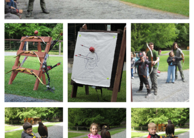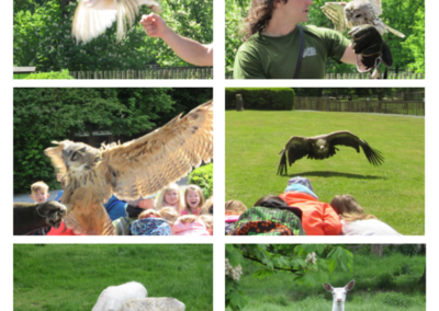 Nejprve jsme si zblízka prohlédli některé živočichy za záchranné stanice, z nichž nejroztomilejší byla asi malá veverka. Pak jsme viděli ukázku střelby z luku, kterou si děti vyzkoušely střelbou do terče. Některé byly tak šikovné, že se trefily i kousek od středu terče. Zároveň si všichni vyzkoušeli, jaké to je držet na ruce káně. Poté jsme zhlédli ukázku sov a dravců, kteří se vznášeli přímo nad našimi hlavami, což byl neskutečný zážitek. Přelet výra velkého nebo supa je opravdu nezapomenutelný. Na závěr jsme shlédli krmení bílých jelenů, při kterém jsme se o nich dozvěděli několik zajímavostí, jako třeba, proč jsou tak vzácní.