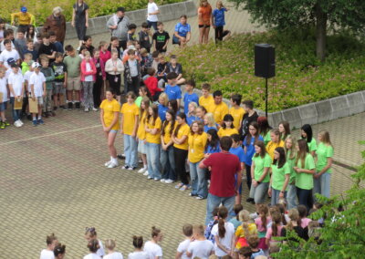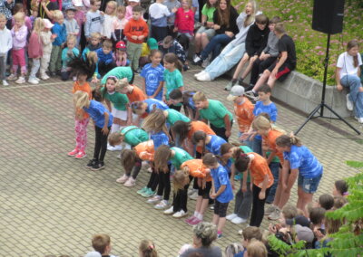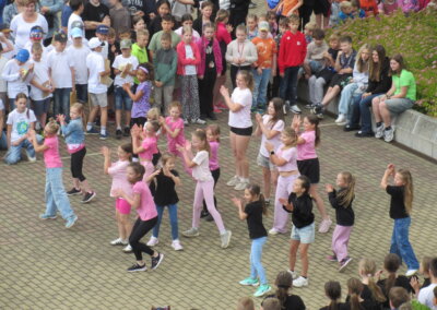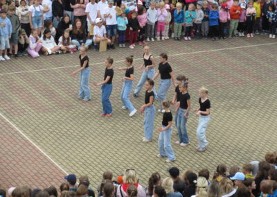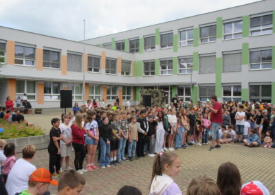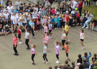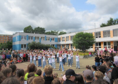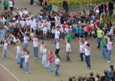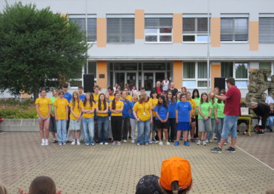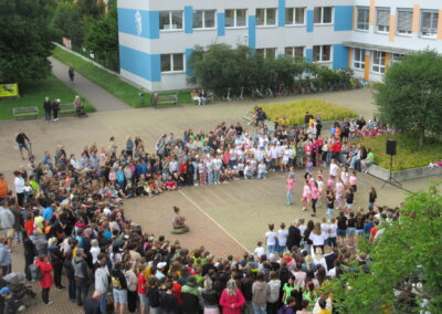 Tak jako každý rok se naše škola připojila k městskému festivalu Zrcadlo umění kulturním vystoupením žáků na náměstíčku před školní budovou ve středu 11. června mezi desátou a jedenáctou dopolední. Návštěvníci či jen náhodní kolemjdoucí mohli vyslechnout koncert našich pěveckých sborů pod širým nebem a zhlédnout řadu tanečních vystoupení.
