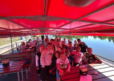 Žáci 4.C a 4.D si ve čtvrtek 4. září užili nádherné dopoledne na výletní lodi Arnošt. Plavba byla odměnou za jejich skvělou celotřídní účast ve sběru starého papíru. Slunce svítilo, nálada byla výborná.
