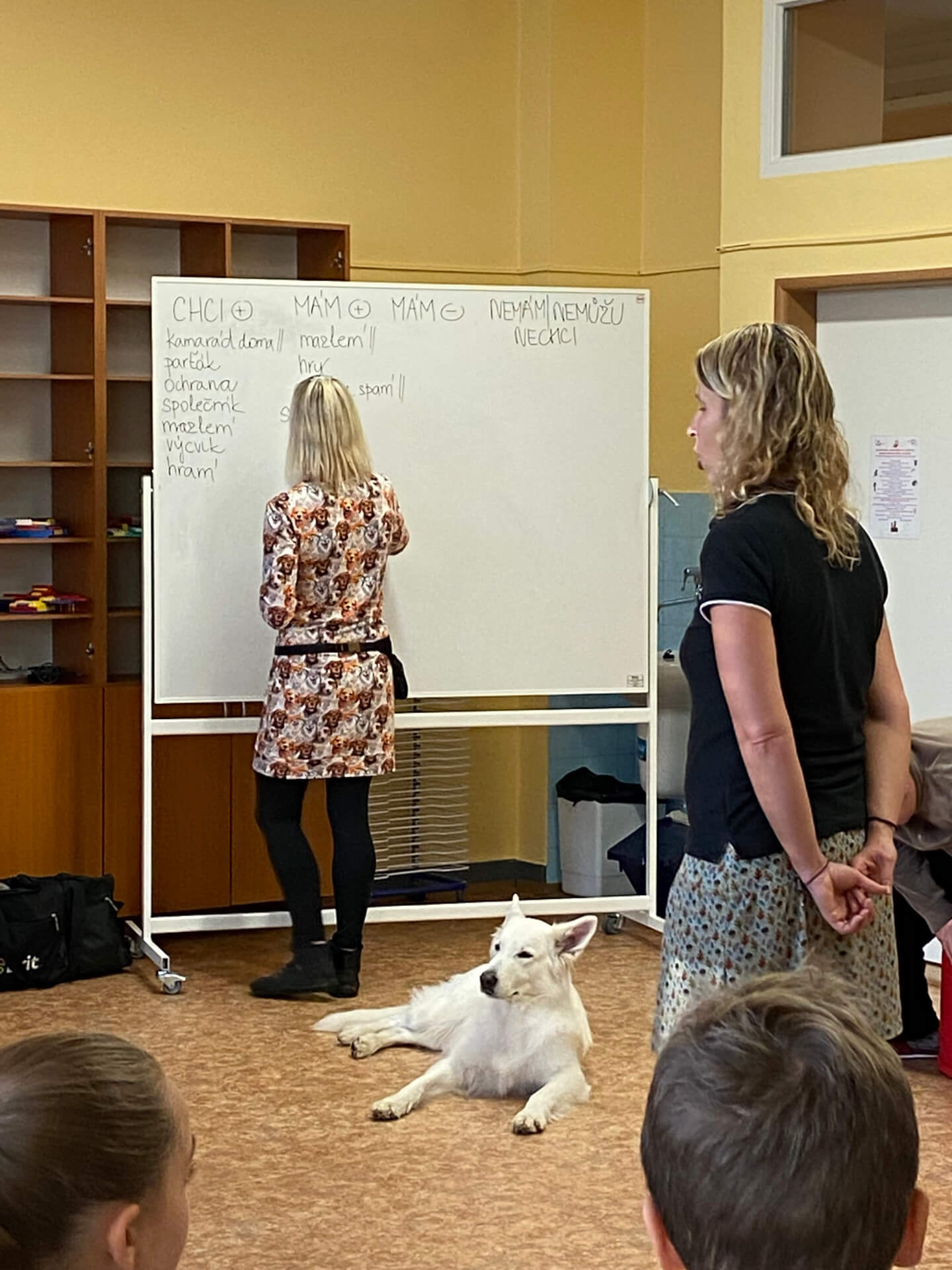 Děti ze 3. a 4. tříd se hravým způsobem během zážitkového programu s názvem „Mít tak pejska“ dozvěděly, co vlastnictví čtyřnohého kamaráda obnáší. Prostřednictvím speciálně vycvičených a socializovaných canisterapeutických psů si mohly vyzkoušet některé aktivity k rozvoji empatie, respektu a odpovědného chování.