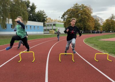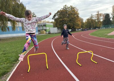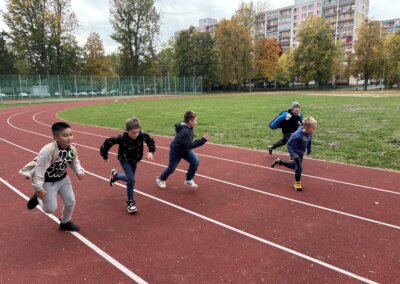 Říjen patřil dostihům a ani žáci školní družiny nebyli ochuzeni o tento zážitek. V hojném počtu se postavili na start již tradičního překážkového běhu. V cíli je za zdolání nelehkých překážek čekala sladká odměna.