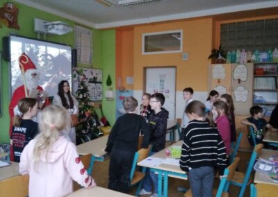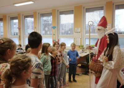 Vánoce jsou již za dveřmi, a tak v pátek 6. prosince do školní družiny zavítal Mikuláš se svým doprovodem. Děti Mikuláši zpívaly a recitovaly, dostal od nich i několik obrázků. Jen čert odcházel s dlouhým nosem, nikdo s ním do pekla nechtěl.