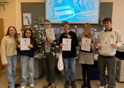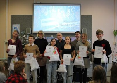 Ve středu 26.11. 2025 se na ZŠ Závodu míru konal 20. ročník městského kola rétorické soutěže Mistr slov. Za naši školu soutěžilo celkem sedm žáků ze 6., 8. a 9. ročníku. V kategorii 8. a 9. ročníků ve velké konkurenci sedmi pardubických škol zazářila a získala 2. místo Elena Volková z 8.B se svým originálním textem Hvězda. Ve stejné kategorii dostal čestné uznání poroty Dan Váša z 9.B za text Ďábel nemá rohy.