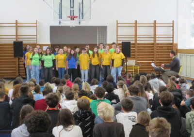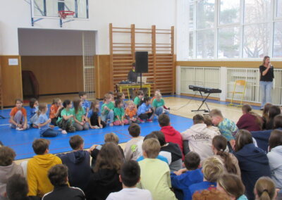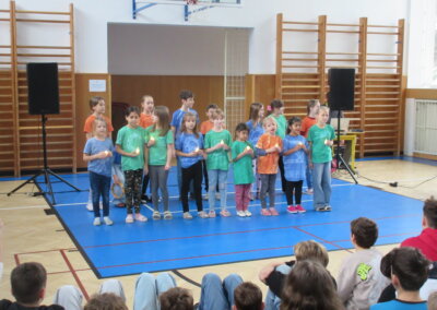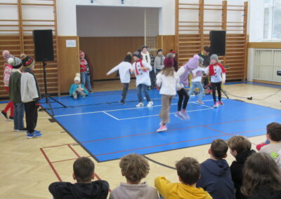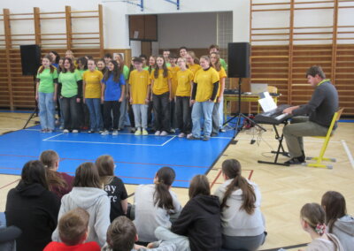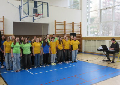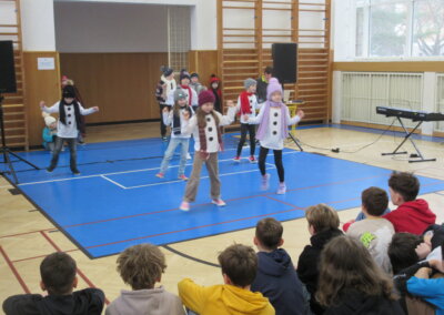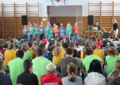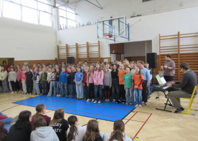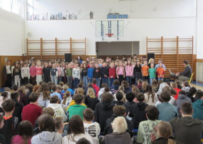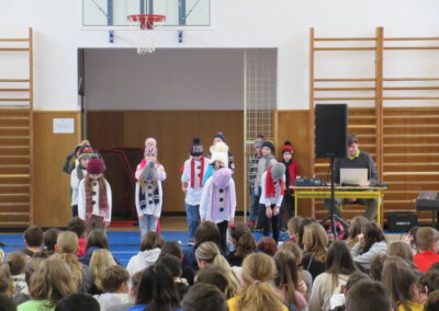 Ve středu 17. prosince si školní pěvecké sbory připravily vystoupení pro své spolužáky v tělocvičně. Nechybělo ani taneční vystoupení žáků prvního stupně. Za hudebního doprovodu svých pedagogů žáci zazpívali vánoční písničky, jimiž navodili atmosféru blížících se svátků.
