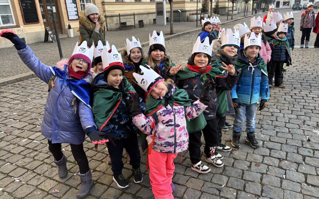 Stejně jako v předchozích letech, se žáci naší školy ve spolupráci s pardubickou Charitou zapojili do Tříkrálové sbírky. Koledníci z 1.A se zúčastnili slavnostního zahájení a mají za sebou i první koledy. Úsměv, radost a dobré slovo budou rozdávat také v příštím týdnu.