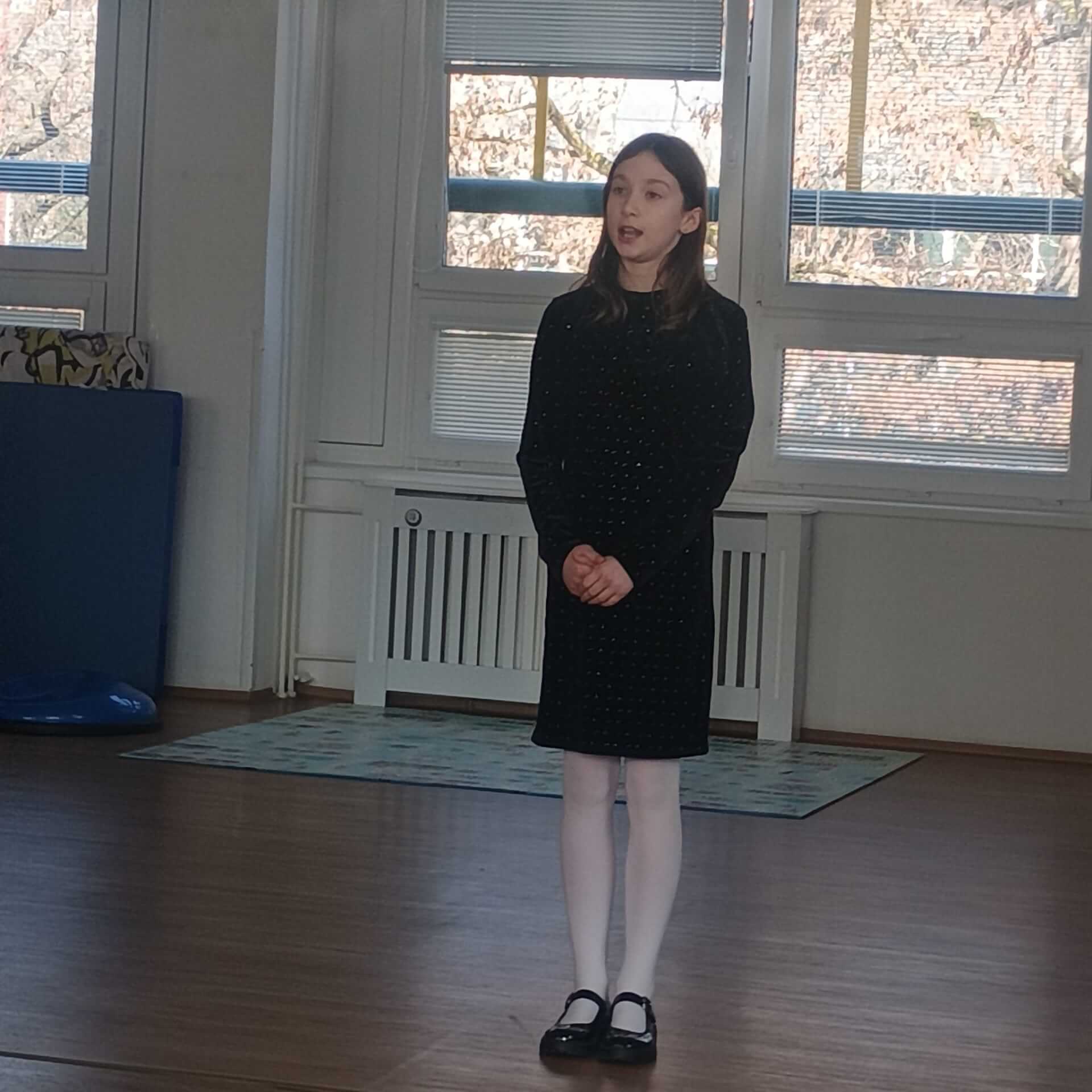 V soutěži reprezentovali naši školu finalisté ze školního kola recitační soutěže z prvního stupně Barbora Slavíčková z 2.C, Jana Ďurovcová z 2.D, Barbora Francová ze 4.B a Bára Ješinová ze 4.D. Z druhého stupně Ondřej Hančák a Vanessa Zhupnyk z 6.A a Anežka Burešová z 8.C.