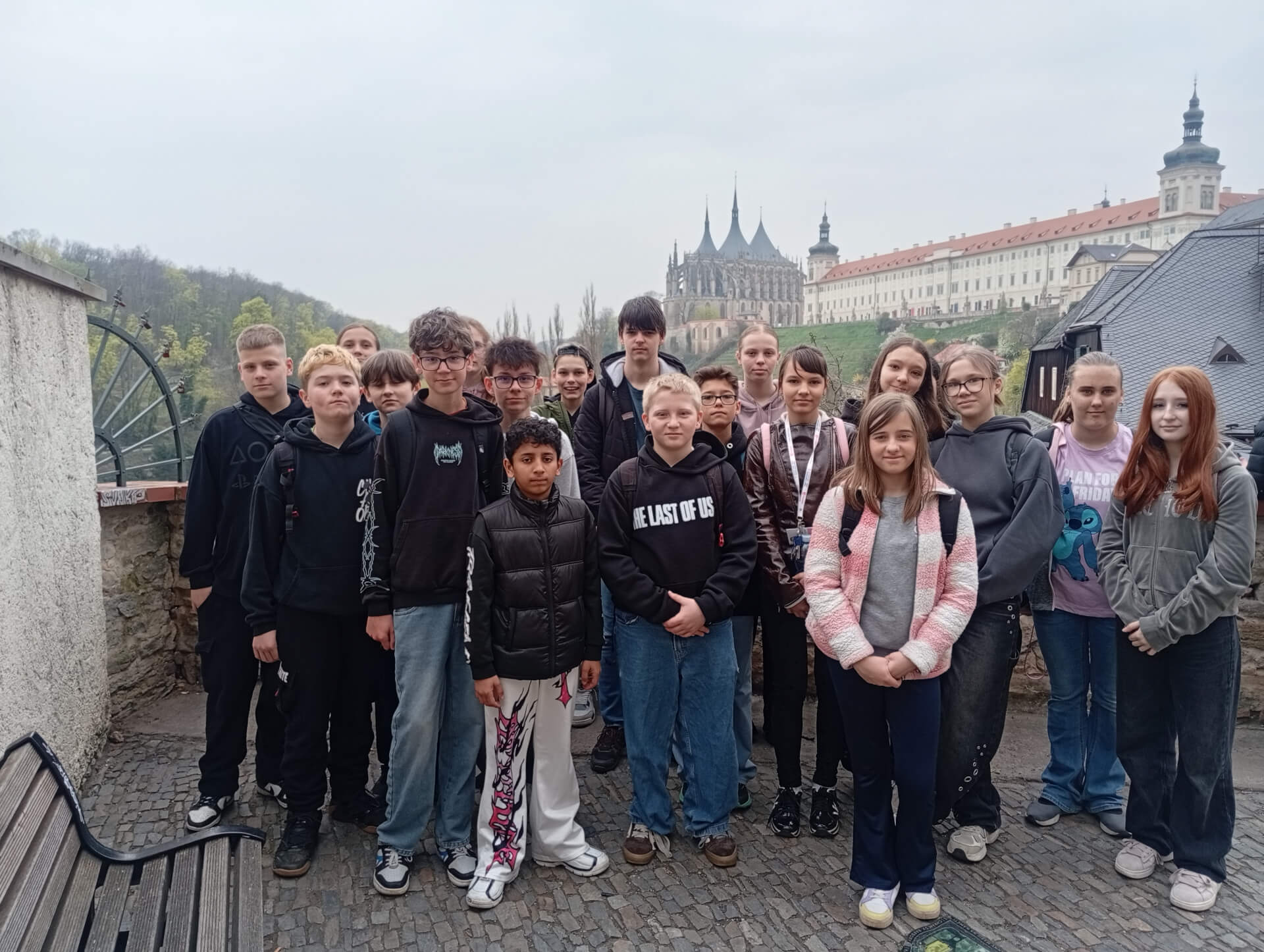 Ve čtvrtek 16. dubna se třída 7.C vypravila vlakem na exkurzi do Kutné Hory. Počasí přálo, a tak mohli žáci zažít středověké město nejen na vlastní oči, ale doslova i na vlastní nohy při procházce od nádraží přes areál někdejšího Sedleckého kláštera až do labyrintu uliček historického centra. Navštívili chrám sv. Barbory, vrcholem programu byla návštěva středověkého dolu. Po obědě si zpáteční cestu zkrátili lokálkou z městského nádraží.