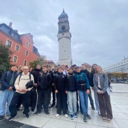 Ve středu dne 22. 10. 2025 se žáci devátých a osmých tříd vydali na poznávací výlet do německého městečka Budyšín (Bautzen), známého svou středověkou historií a lužickosrbskou kulturou. Den byl plný nových zážitků, poznávání i jazykové praxe. Dopoledne žáci ve skupinkách objevovali zajímavá zákoutí města prostřednictvím digitální hry Stadtrallye. Pomocí mobilní aplikace plnili úkoly, odpovídali na otázky a hledali historicky významná místa. Zábavnou formou se tak dozvěděli mnoho o historii města, a přitom aktivně využívali němčinu v reálných situacích. Odpoledne následovala návštěva lužickosrbského divadla, kde žáci zhlédli představení „6 Männer“. Kombinace pantomimy, humoru a známých písní v němčině i angličtině zaujala všechny svou originalitou a energií.