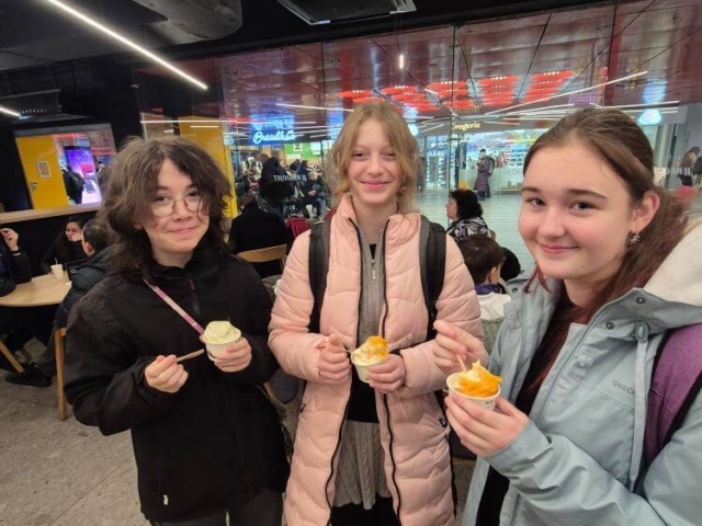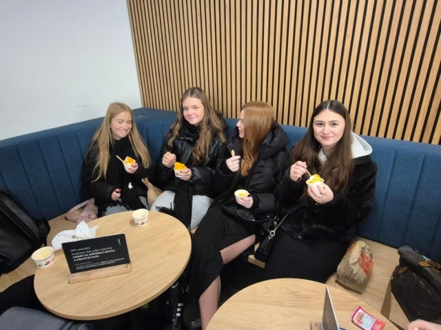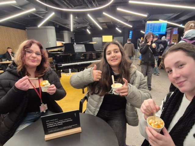Po kulturním zážitku se žáci přesunuli do Obchodního centra Palladia, kde si prohlédli vánoční výzdobu a občerstvili se. Den zakončili příjemným posezením v RegioJet Lounge na hlavním nádraží.