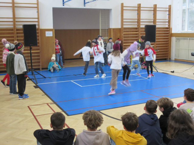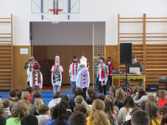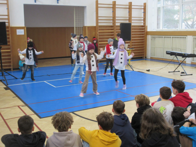 Ve středu 17. prosince si školní pěvecké sbory připravily vystoupení pro své spolužáky v tělocvičně. Nechybělo ani taneční vystoupení žáků prvního stupně. Za hudebního doprovodu svých pedagogů žáci zazpívali vánoční písničky, jimiž navodili atmosféru blížících se svátků.