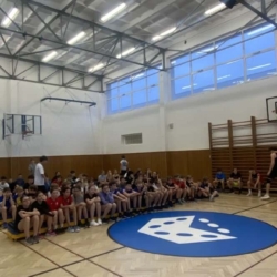 Poděkování patří i žákům z 9. ročníku, kteří se ujali rolí moderátorů, zapisovatelů, rozhodčích a technické čety pro úpravu doskočiště.