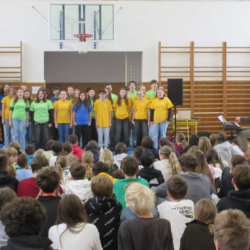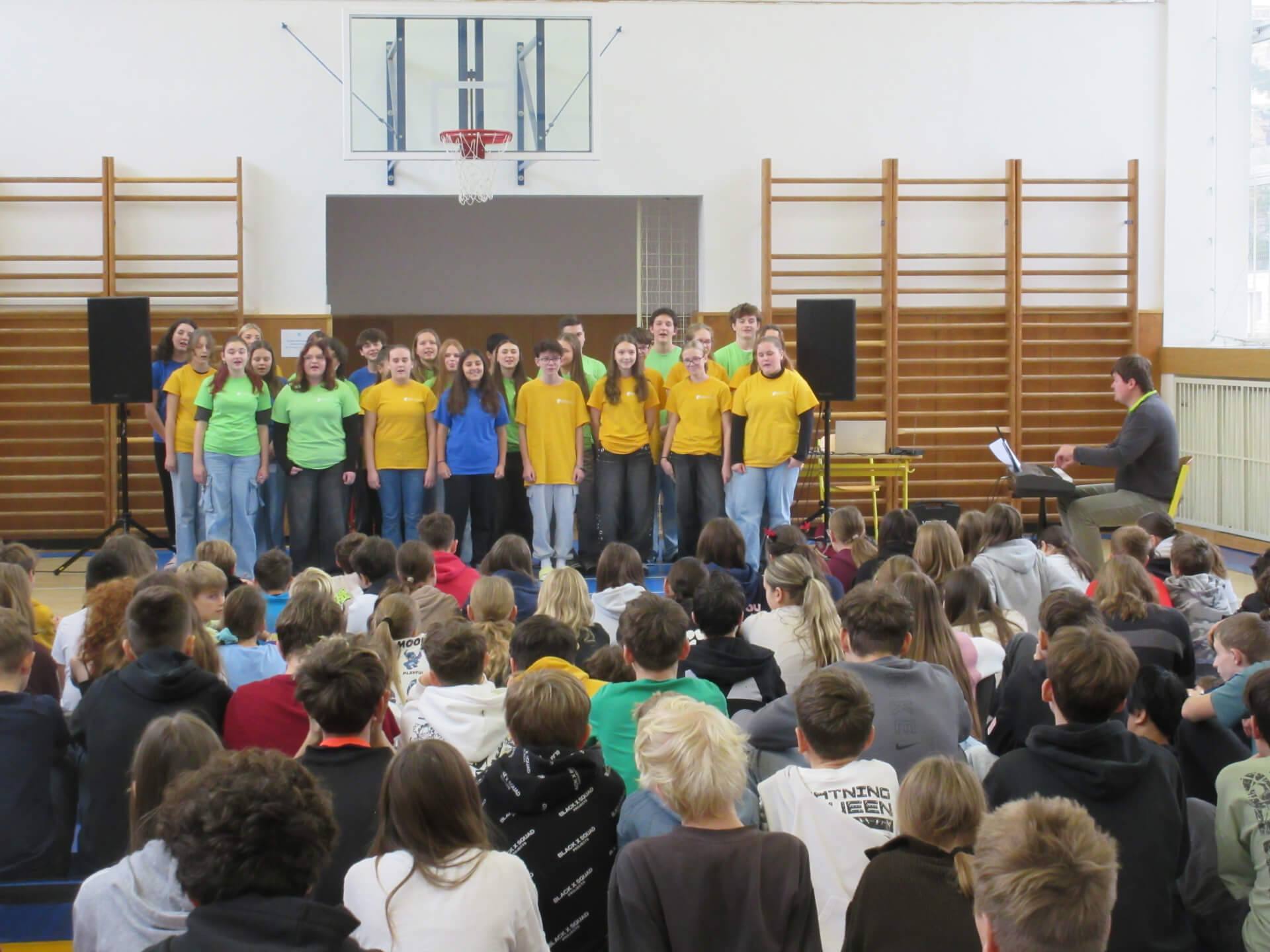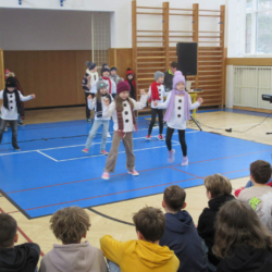 Ve středu 17. prosince si školní pěvecké sbory připravily vystoupení pro své spolužáky v tělocvičně. Nechybělo ani taneční vystoupení žáků prvního stupně. Za hudebního doprovodu svých pedagogů žáci zazpívali vánoční písničky, jimiž navodili atmosféru blížících se svátků.