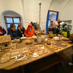 Víte, jak jsme se na začátku adventu naladili vánočně my? Vyrazili jsme na prohlídku státního zámku Žleby a spokojení jsme byli všichni. Prošli jsme svátečně vyzdobeným okruhem zámku, kam se během roku dostat nemůžete. Mlsali jsme v pěkně vytopené i vyzdobené kuchyni. Paní kuchařka nám dala ochutnat skvělé vanilkové rohlíčky. Prohlédli jsme si i zámeckou cukrárnu a zavítali do místní kaple i do malého divadla, kde si s námi povídala usměvavá princezna.