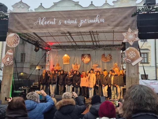 Na konci listopadu se naši žáci představili na dvou adventních vystoupeních, která doprovodila rozsvěcení vánočních stromů v Pardubicích.
