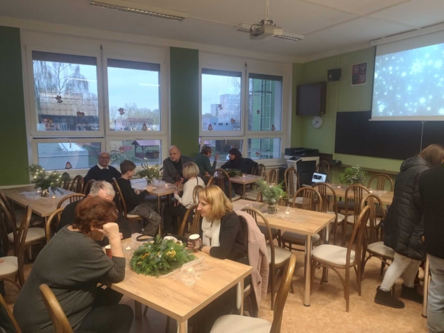 Ve čtvrtek 4. prosince v podvečer otevřela naše škola dveře návštěvníkům z řad rodičovské veřejnosti, bývalých žáků, ale i všem zájemcům, kteří se chtěli podívat, jak to ve škole vypadá. Těšit se mohli na vystoupení pěveckých sborů, tvořivé a sportovní aktivity či hraní na počítačích. Občerstvení nabízela školní adventní kavárna, cvičná kuchyňka, a také jídelna. U stánku ve vstupním vestibulu bylo možné si zakoupit stylové dárky, vytvořené našimi žáky.