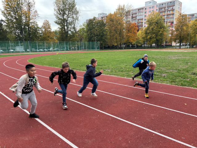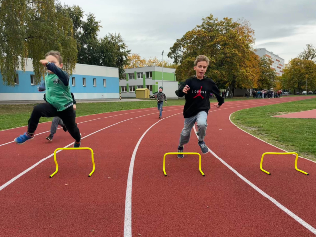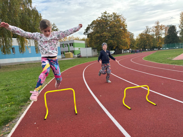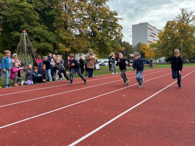 Říjen patřil dostihům a ani žáci školní družiny nebyli ochuzeni o tento zážitek. V hojném počtu se postavili na start již tradičního překážkového běhu. V cíli je za zdolání nelehkých překážek čekala sladká odměna.